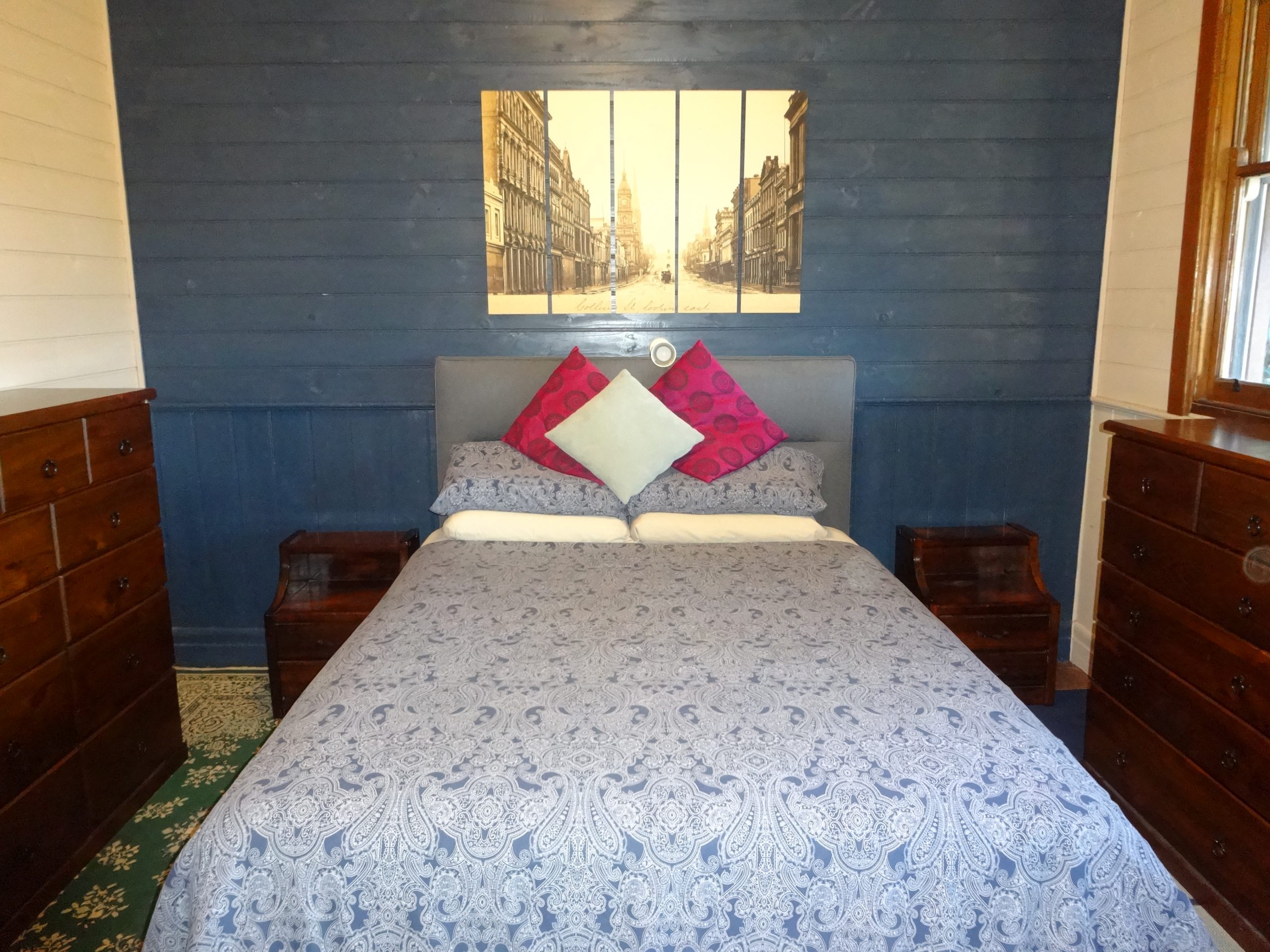 - Main bathroom with bath tub, linen press and large storage cupboard